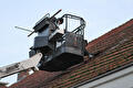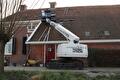 Na de ‘Sinterklaasstorm’ op 5 december zijn bij een boerderij aan de Zuiderveen in Winschoten een aantal dakpannen beschadigd geraakt. Tevens zijn na vele jaren in het dak op diverse plekken zwakke plekken ontstaan. Met behulp van de hoogwerker worden de dakpannen vervangen en de zwakke plekken in het dak hersteld. Door gebruik te maken van de hoogwerker hoeft men het dak niet op om de herstelwerkzaamheden te verrichten en wordt voorkomen dat men door de zwakke gedeeltes zakt. Naast de herstelwerkzaamheden zijn tevens een drietal dakramen gemonteerd.