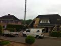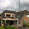 De dakrenovatie is inmiddels bijna afgerond, nu we er toch waren wilde de opdrachtgever toch wel graag de binnenruimte in de slaap- en badkamer vergroten. Daarom zijn we nu bezig met het plaatsen van een dakkapel.