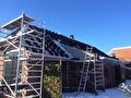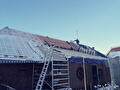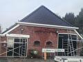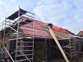 In Slochteren zijn we begonnen met het renoveren van het dak van een partyschuur. We halen de pannen eraf en monteren op de oude sporen een isolatieplaat waarna we panlatten spijkeren en nieuwe geglazuurde pannen leggen. Als laatste monteren we nieuwe kunststof goten.