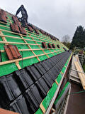 Aan de Rhederweg in Bellingwolde hebben wij de oude pannen en latten verwijdert, we hebben sporenkap isolatie met een isolatiewaarde van Rc 3.5 toegepast. We hebben geglazuurde dakpannen op het dakgelegd en om het geheel af te maken hebben we kunststof goten gemonteerd.