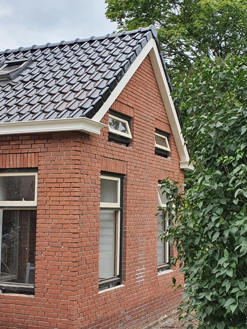 In Meeden hebben we het dak van een oud arbeiders huisje volledig gestript en vanaf de basis weer opgebouwd met behoud van de oude sporen constructie. Slechte sporen vervangen, metselwerk hersteld, kozijnen vervangen en de woning voorzien van nieuwe kunststof goten en overstekken.