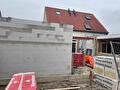 In de Karel Doormanlaan zijn we begonnen met het uitbouwen van de bestaande keuken, tevens bouwen we een nieuwe garage aan de woning vast met aan de achterkant hiervan een bijkeuken. Deze keer geen houtskeletbouw maar gemetselde binnenmuren. De spouw en het platte dak worden goed geïsoleerd, zodat er weinig energie nodig is om het geheel te verwarmen.