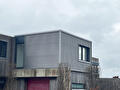 In Blauwestad hebben we een extra verdieping (slaapkamer) op de bestaande garage gebouwd. De nieuwe wanden hebben we bij ons op de werkplaats prefab gemaakt en met eigen kraan geplaatst. Zo hebben we in twee dagen een complete opbouw waterdicht geplaatst. De wanden en het dak zijn volgens het bouwbesluit geïsoleerd en aan de buitenzijde afgewerkt met horizontaal metalen golfprofiel, welke goed aansluit bij het houtwerk van het bestaande woonhuis.