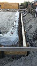 In 2015 is aan de Hoofdweg in Westerlee een schuur afgebrand. Na afwikkeling met de verzekering hebben wij de opdracht gekregen een nieuwe schuur met bijkeuken te bouwen. We zijn begonnen met de bekisting en de wapening, waarna we de vloer met vorstrand kunnen storten.
