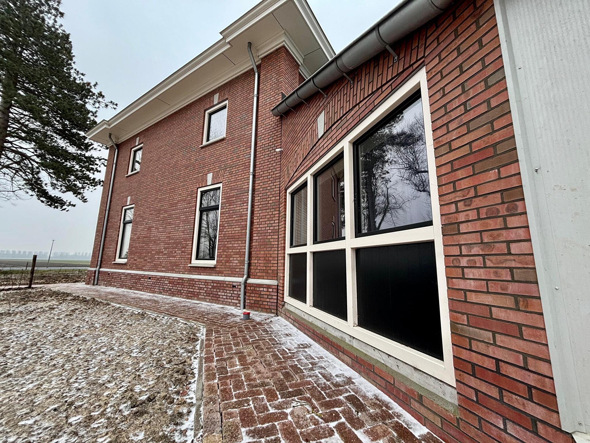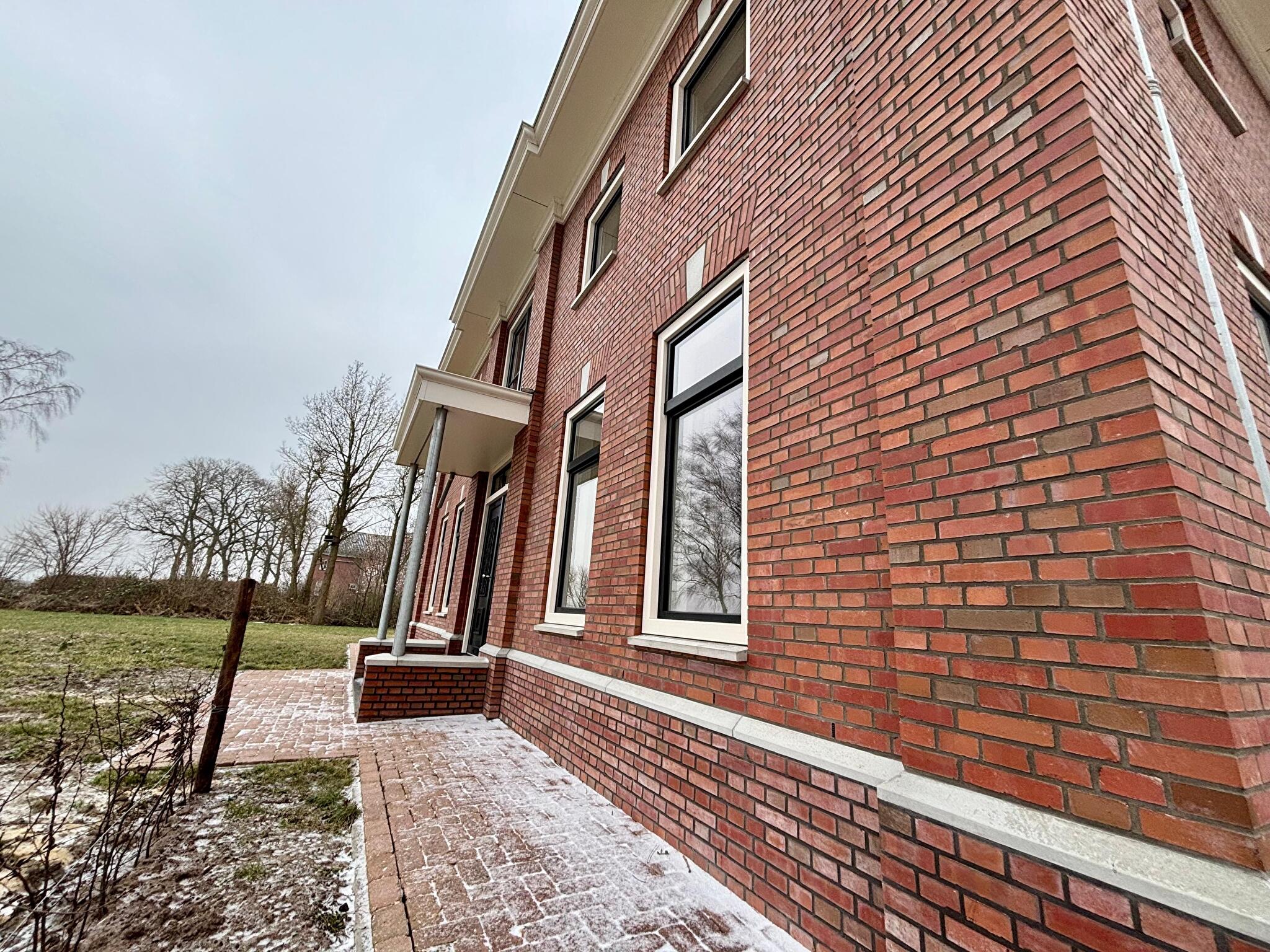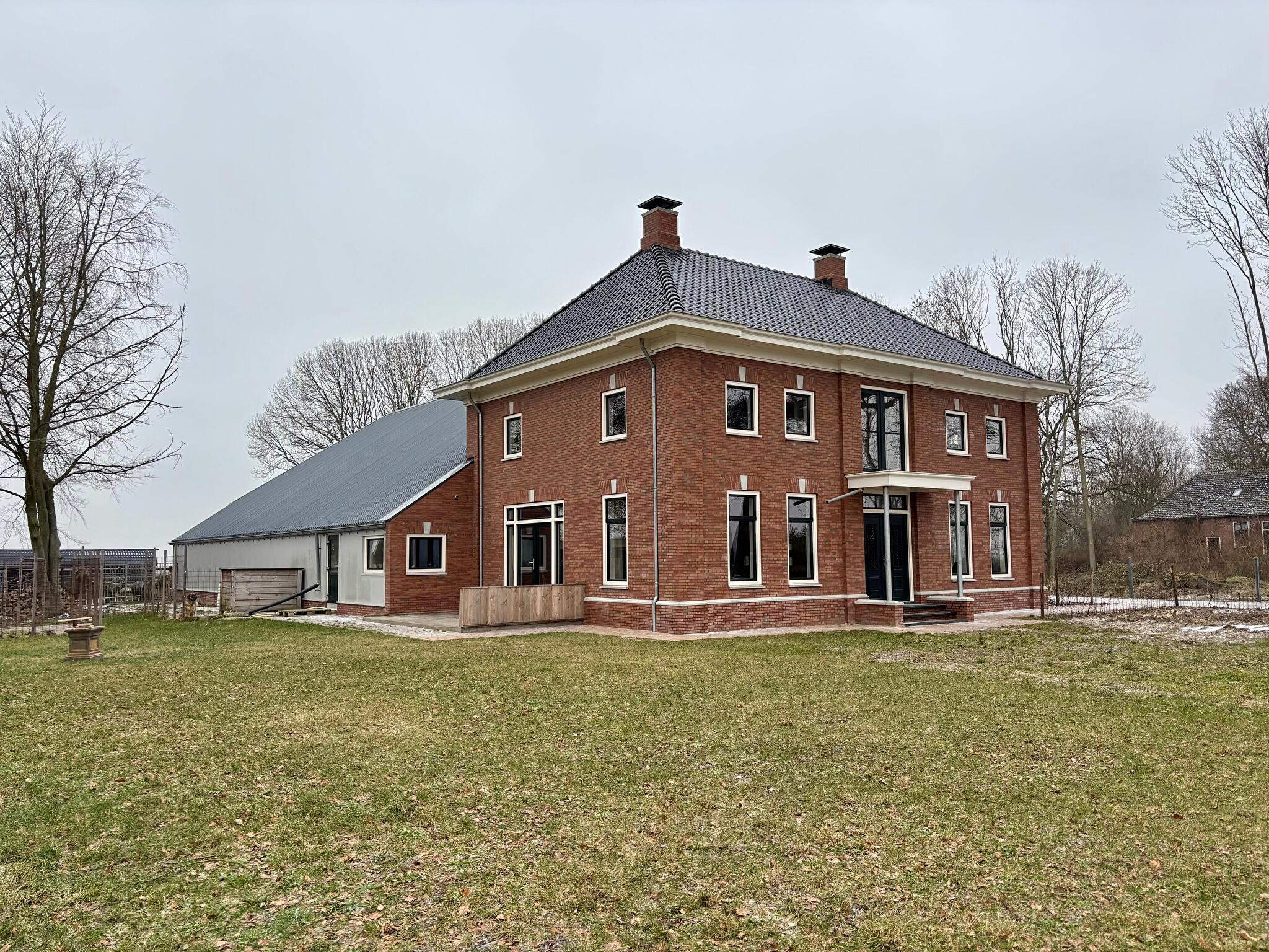 We zijn begonnen met de nieuwbouw van een woonboerderij met schuur in Nieuw Beerta. Deze boerderij wordt geheel gebouwd in oude stijl. Voor het metselwerk is gekozen voor de karakteristieke Groninger rode baksteen die gemetseld wordt in staand verband. Om in de oude stijl te blijven is gekozen om outhentieke elementen terug te laten komen in het metselwerk, zoals een hanekam met sluitsteen boven de kozijnen en een spekband in het metselwerk met daaronder een verbreed trasraam. Om de woning wel onderhoudsvriendelijk en toekomstbestendig te maken is er gekozen voor kunstof kozijnen en kunstof dakgoten met bijpassende smetplank. Hierdoor is de woning zeer onderhoudsarm, maar komen de oude details overal in terug.