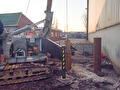 Bij Scheepswerf SCHN in Foxhol was de bestaande betonvloer zodanig verzakt dat er geen scheepssecties meer uit de loods konden worden gereden. Bij inspectie bleek de oude vloer op klei en veengrond te liggen. Wij brengen heipalen aan tot aan het vaste grond, keggen nieuwe wapening waarna we een nieuwe vloer storten.