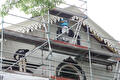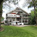 Het bestuur van museum boerderij Hermans Dijkstra in Midwolda vroeg ons om het houtwerk te inspecteren en een paar rotte delen te vervangen. Tijdens de inspectie bleek dat er veel meer verrot was dan werd aangenomen. We hebben het voorhuis in de steigers laten zetten en zijn begonnen met het vervangen van bijna alle ornamenten en geprofileerde gootlijsten. De ornamenten hebben wij computer gestuurd laten frezen. Een hele puzzel, maar erg leuke uitdaging om alle onderdelen weer tot een geheel te maken.