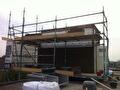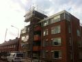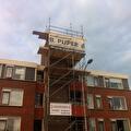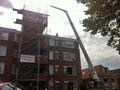 De buitengevel van de liftschacht op het platte dak van een flat aan de Nassaustraat in Winschoten is dusdanig slecht, dat ons is gevraagd de buitengevel te vervangen voor nieuw metselwerk.