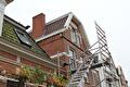 Op de Burgemeester Venemastraat hebben we twee nieuwe schoorstenen in het oude model weer opgemetseld.