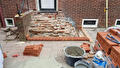 De stoep voor de voordeur van een klant van ons in Drieborg was na 50 jaar trouwe dienst aan vervanging toe. We hebben de hele stoep tot op de fundering gesloopt en daarna opnieuw opgemetseld, zodat deze weer gemakkelijk 50 jaar mee kan.