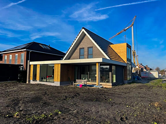 In Blauwestad aan de Leeuwerik bouwen wij een luxe gezinswoning. Deze woning wordt volledig traditioneel gemetseld en nul op de meter uitgevoerd. Voor deze woning is gekozen voor een strakke lichte steen. De stenen hebben we stootvoegloos gemetseld wat een strak resultaat geeft. Het afwisselend gebruik van steen en hout geeft de woning een tijdloze uitstraling