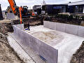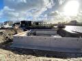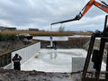 Na eerst een nieuwe woning voor onze opdrachtgever in Blauwestad te hebben gebouwd zijn we nu begonnen met het boothuis. De sparing voor de haven is gegraven en het zandpakket opgebouwd, zodat we beton kunnen storten. Op het beton plaatsen we betonnen keerwanden, waarna de tuin kan worden aangewerkt en het water binnen gelaten kan worden.