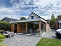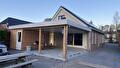 Een deel van de achtergevel is opengebroken voor een nieuwe indeling: hier is een overkapping met schuur gerealiseerd en een grote schuifpui geplaatst die zorgt voor een mooie verbinding tussen binnen en buiten.