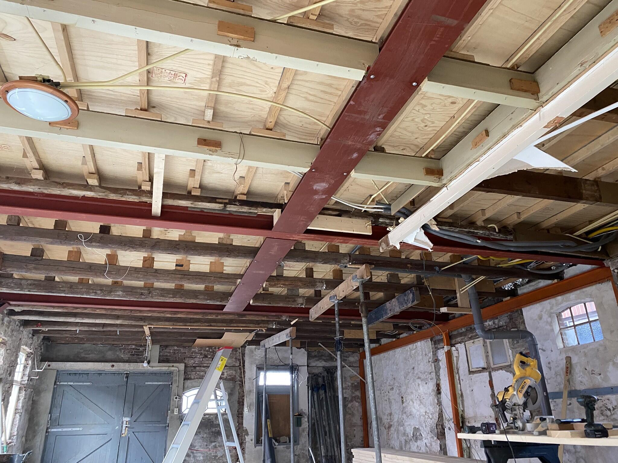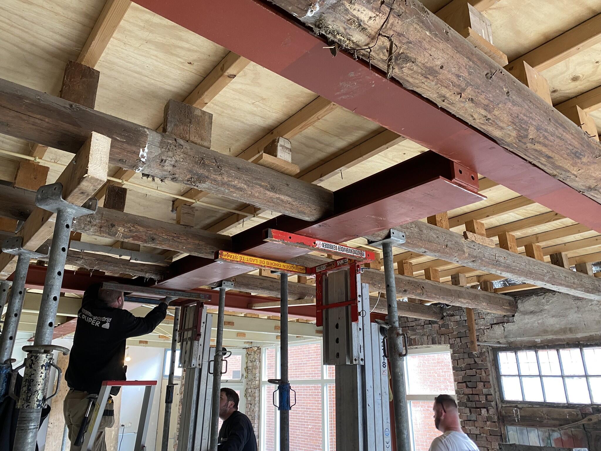 Om een open en dragende ruimte te creëren, is er in de hele schuur een staalconstructie geplaatst voor de verdiepingsvloer. Daarnaast zijn rondom geïsoleerde voorzetwanden geplaatst en hebben we de oude kozijnen vervangen door nieuwe houten exemplaren, passend bij de stijl van de woning.
