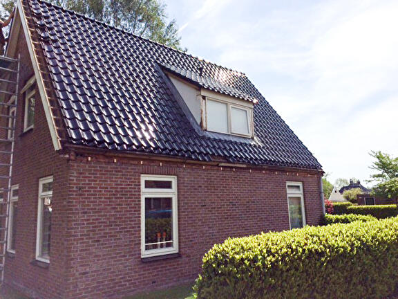 De familie Lingbeek in Oude Pekela wilde af van het schilderwerk aan de goten en de dakoverstekken. Wij hebben deze verwijderd, nieuw achterhout aangebracht en hierop nieuwe Polytech kunststof goten en overstekken gemonteerd.